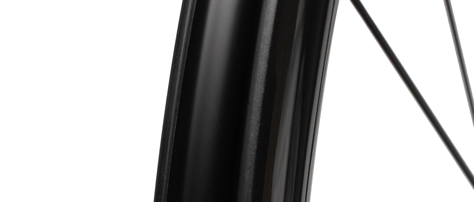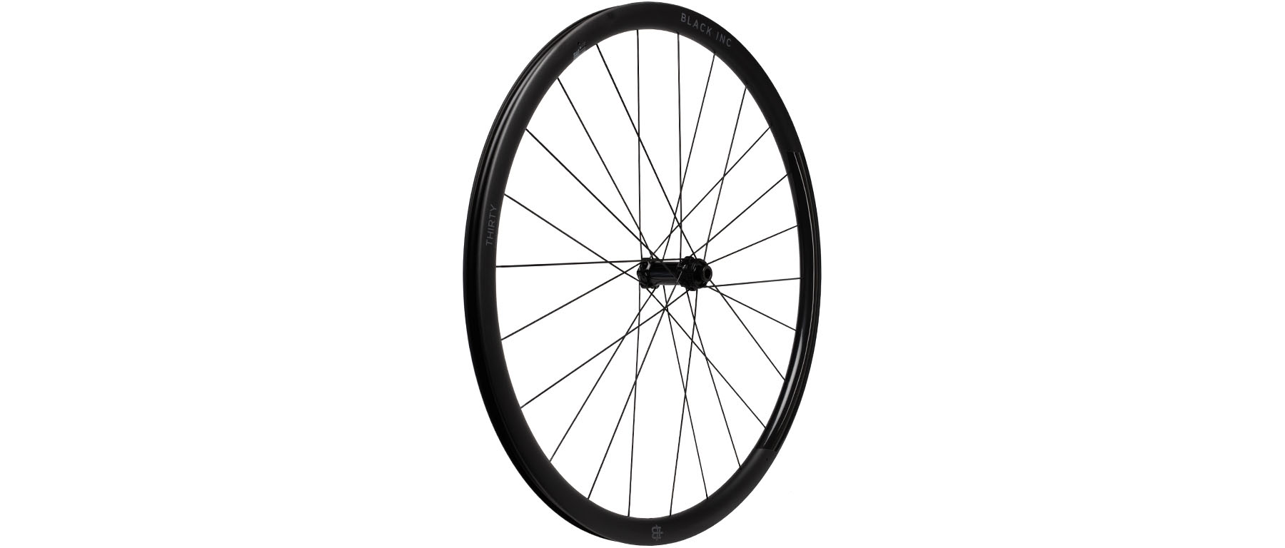 The disc specific rims are constructed by Black Inc from HD (high modulus) carbon and is CFD shaped for improved aerodynamics and strength. The CFD shape is proprietary and specific to the actual rim depth, and is coupled with greater width to make for perfect contours, function and silhouette. The internal rim width of both the Thirty front and Fifty rear is 21mm. The external aero width is 27mm at the widest point. Black Inc struck a balance with this design, as to not be too wide like many of its competitors. In the furor to build all road capable wheels, many manufacturers simply approached this with "wider is better", when in reality the correct rim width for its chosen application is always best. The 21mm/27mm combination of the Black Thirty Fifty rims allows for road race tires as well as allowing the use of tires up to 40c. The tubeless ready rim perfectly seats 25c-30c tires for a road set-up, if your frame allows for overall clearance.