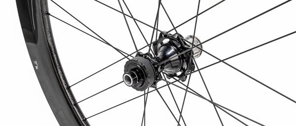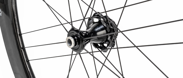 G3 spoke geometry arranges 24 aero-elliptical steel spokes per wheel in groups of three, using a 2:1 ratio that places twice as many spokes on the loaded side of each hub. The front wheel concentrates spokes on the disc brake rotor side where braking forces demand structural support. The rear wheel places additional spokes on the cassette side where pedaling loads concentrate. This asymmetric pattern achieves balanced tension across all spokes rather than the compromised tensioning that symmetrical patterns impose on asymmetrically loaded wheels. The result is a wheel that transmits power efficiently, maintains trueness longer, and responds precisely to steering and braking inputs.