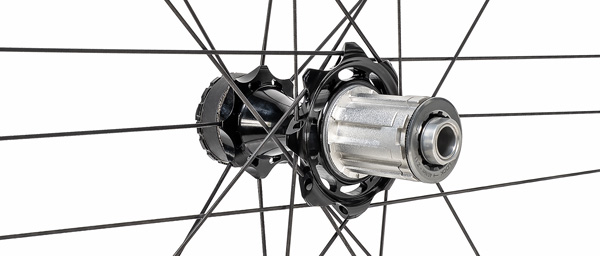 Aluminum hub construction uses Campagnolo's monolithic design—a single-piece shell that eliminates joints and potential flex points. The hub shape itself underwent wind tunnel optimization, with an hourglass profile that reduces frontal area and smooths airflow around the spoke flanges. USB ceramic cup-and-cone bearings provide smooth rotation with the adjustability that allows precise preload setting. Unlike sealed cartridge bearings that require replacement when wear accumulates, cup-and-cone systems permit adjustment and maintenance with basic tools. Hub spacing follows current standards: 12x100mm front and 12x142mm rear with aluminum thru-axles.