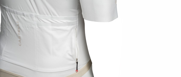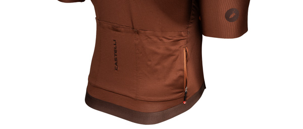 The fit sits looser through the chest and torso compared to Castelli's race-oriented jerseys, accommodating a more upright riding position and the inevitable espresso and pastry that might follow a morning spin. Three rear pockets handle the usual cargo — phone, wallet, keys, arm warmers — while the full-length zipper allows ventilation adjustment as effort levels change. The collar sits lower and more relaxed than aero-focused designs, which means no pressure points during longer days in the saddle or awkward bunching when you're off the bike.