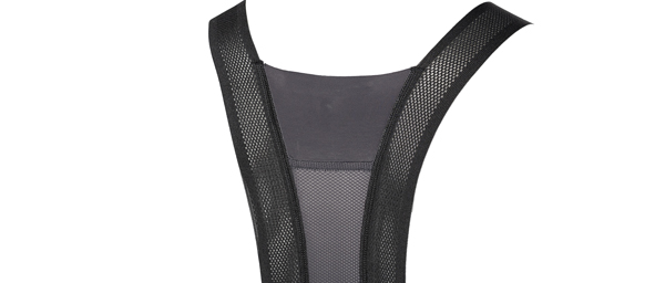 - Stretch mesh bib straps offer breathability and a secure fit