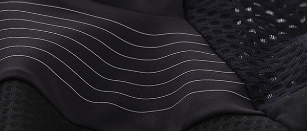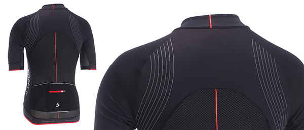 While Craft applies its Bodymapping technology to almost all of the cycling line at this point, the technique and application show true excellence when designing a piece such as the Craft Aero Tech Jersey. In developing this race performance jersey, Craft integrated ergonomics, anatomy, material development, aerodynamic considerations, and direct feedback from sponsored pro cyclists. This mix of engineering and human feedback is crucial to refining concepts with real-life action, weather variables, seam placement, stretch and overall function. The three primary fabrics used in the jersey are variations built from Craft's extensive knowledge of polyester fibers combined with elastane. In areas requiring more mobility and stretch, with less heat management (think shoulders, upper back), the fabric contains more elastane and a tighter weave. In areas where heat and moisture management is paramount, the elastane percentage is reduced, and hollow polyester fibers are woven in more open, multilayer patterns that allow air flow, wick away moisture and dissapate heat. Where muscle compression, fit, and support are crucial, a middle ground is found, and the weave tightens up some. The side panels are an excellent example, as Craft has identified the fine muscles along the obliques and rib cag eas needing from support from road vibration. A fourth fabric is found under the arms, where maximal heat and moisture release are required. This soft, open, hexachannel mesh keeps you cool and dry.