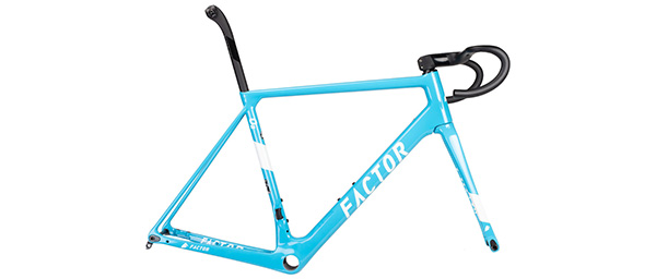 Serious cycling enthusiasts can appreciate excellence across the industry. Factor Bikes isn't a true boutique bike company, nor is it a mass producer of makes and models. Factor, born from bf1 Systems, a technology and engineering firm that worked with Aston Martin, Maserati, Ferrari, and other premium performance vehicle companies and teams. With a direct and impressive background in aerodynamics and carbon fiber technology, engineering and manufacture, bf1 Systems started working with major bicycle players and cycling teams, bringing new technologies, vertical integration in production, and knowledge to the massive growth of high-end carbon fiber framesets and components. Former pro cyclist Baden Cooke and cyclist/engineer Rob Gitelis bought Factor from bf1 and started building just a few select aero road, TT, and road frame designs. The O2 Disc Frameset is an incredible road race design that weighs in at 810 grams (54cm), yet rides with preternatural smoothness, power transfer, handling, and overall performance.