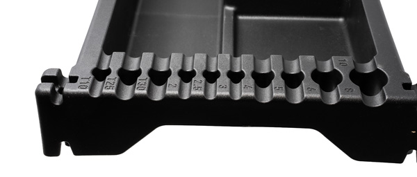 - Two deep recessed bays securely hold fluid bottles, bicycle components, and irregularly shaped tools