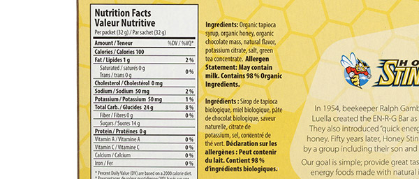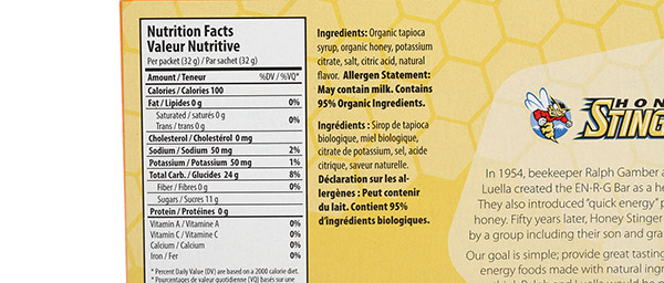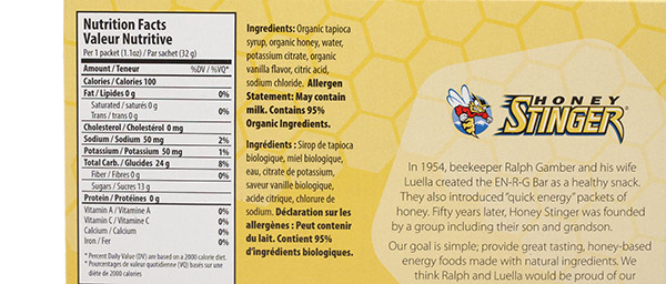 - Ingredients: Organic Tapioca Syrup, Organic Honey, Potassium Citrate, Salt, Organic Natural Flavor, Citric Acid, Water