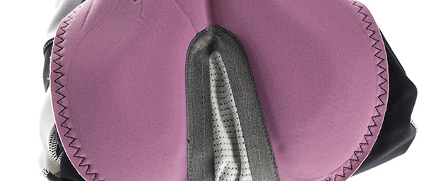Garneau develops its own chamois pads, and uses the Women's Motion AirGel model in the Neo Power Motion. This pre-formed, ergonomic pad features multi-thickness, perforated, high-density memory foam that employs Beveled Edge Molding. This technology eliminates drastic transitions from one thickness to another, resulting in a smooth feel without pinching points to eliminate chafing. Perforated gel padding adds more comfort from impact, while still allowing moisture transfer, and ventilation at the front of the pad encourages air flow. The vented v-shaped rear section allows for independent glute and leg movement and helps to release heat and moisture. Along with expected antibacterial properties, Garneau uses a copper technology, called Cupron, which can reduce skin irritation and provides additional antimicrobial defense. It is also has an anti-allergen capability and can help promote wound healing. As a complete visual package, the chamois seems simple, but when you understand just how much has gone into it's development, you understand and appreciate the commitment to rider health and comfort.