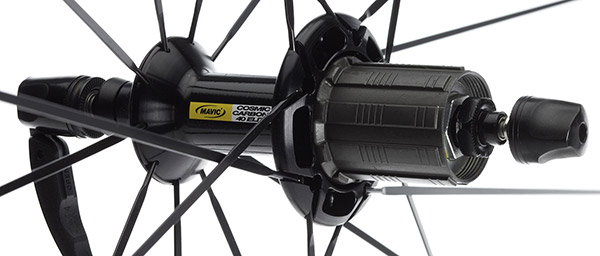 As you'd expect the 40 Elite wheelset rocks a bevy of Mavic technology, such as FORE spoke drilling (possible because of the aluminum rim insert), QRM+ bearings, the lightweight alloy FTS-L freehub body system, and Yksion Pro tires. Straight pull, double butted, bladed steel spokes cut through the air, and provide high tension and some impact and vibration damping, with 16 radially laced up front and 20 in the rear, 2x on the driveside, radial for the non-drive side. Machined alloy hubs carry the whole assembly. Outfitted with oversized alloy axles and the fast rolling, super durable QRM+ sealed cartridge bearings, speed and low friction come naturally.
