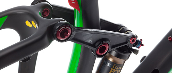 Niner's patented 29er specific suspension design is call CVA, for Constantly Varying Arc travel and has been optimized for 90mm travel. The lower pivot sits under the bottom bracket, creating an instant center location in front of the BB. A dual linkage system then reacts with counter force to suspension load. This essentially isolates the drivetrain from the suspension, maintaining pedaling efficiency throughout the travel range, regardless of the chainring/gearing combination, and basically eliminating the snap-back that can occur with many suspension designs as the suspension unloads. Sag setting is crucial, because just past sag, the axle path moves inward, with a constantly varying arc, limiting chain growth throughout the travel range. That is a lot of technical talk, but CVA works exceptionally well, and takes full advantage of the 29er platform. The RKT 9 Carbon RDO is smooth and efficient, driven by a CVA/RKT9 specially tuned Fox Float DPS shock. The Kashima Coat keeps action smooth and clean, while the remote three position lever allows the rider to easily select the most effective platform for the conditions. Niner's custom forged 6066 alloy linkage is incredibly stiff, and light, and the company's own anodized red aluminum hardware is not only eye-catching, but easy to work with and maintain. Enduro Max Black Oxide sealed bearings smoothly handle the action.... Read More