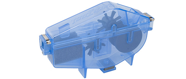 The CM-5 Cyclone Chain Scrubber uses an extra large solvent reservoir and a series of rotating brushes to get chains really clean. A magnet at the bottom of the Cyclone's solvent reservoir draws particles scrubbed from the chain, effectively keeping them from being redistributed on the chain during cleaning.