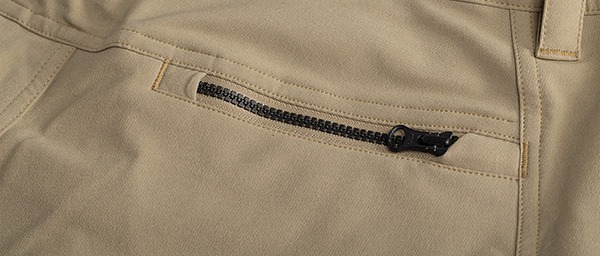 Equipped with a bit of an elastic waist, as well as belt loops and a snap-front closure with a zip fly, convenience and comfort are well represented. You get front, rear and side zip pockets and a 10-11" inseam. The look and finish is clean, sleek, and relaxed without looking like a true baggy.
