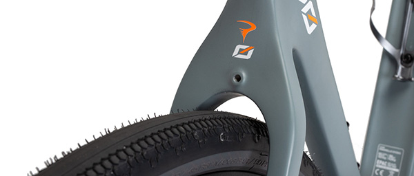 Like the Grevil and Dyodo, the Dyodo E-Gravel features T700 nanoalloy carbon by Toray, built with Dyodo E-Gravel-specific Asymmetric construction from the fork to the rear drop-out to handle the power, ensure the bike is balanced side to side, and while under pedaling and cornering loads. The tapered fork is the Onda Disk, with extended aero Fork Flaps, Flat Mount disc interface, internal routing, and 12mm thru-axle. The engineering also takes into account the battery and rear hub weight, as well as the drive power of the electric system. From the Grevil comes many of the tube shapes, including the driveside dropped stay which creates the space for wider tires along with the 12/142mm rear dropout. The geometry is largely similar to the Grevil, withe exception of a slightly taller head tube per size. The seatpost is still aero, but the more forgiving Grevil design for an increase in compliance.