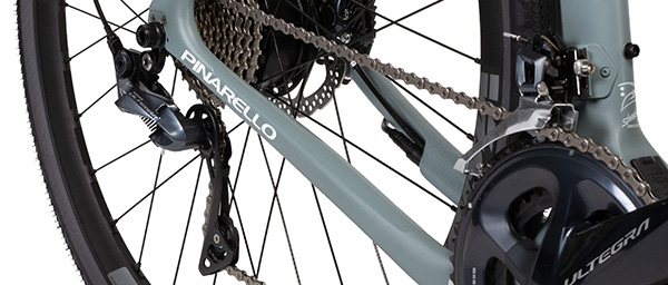 The heart of any e-bike is the drive system. As with the Dyodo, Pinarello utilizes the the Spanish designed and tested ebikemotion X35 drive system and iWoc ONE controller. The X35 is a rear hub-based system, which is largely hidden by the cassette and disc rotor unless you are within a few feet. On the Dyodo, the 250 Wh battery is housed in the downtube, towards the bottom bracket. A flush mount charging port is located at the crux of the seattube and downtube junction. On the top tube, by the head tube, you find the single button LED iWoc ONE controller. Not much to see here. An App for your smartphone allows you to monitor the unit as well. The complete system adds about 7.5 lbs to the bike. Pinarello created a larger downtube to accommodate the battery and the special rear dropout system manages the hub attachment and wiring harness. What is special about the Dyodo E-Gravel? You can't easily visually identify it as an e-bike, and that along with the powered assistance of the motor is why the Dyodo series bikes have drawn so much interest.... Read More