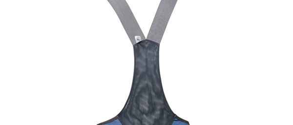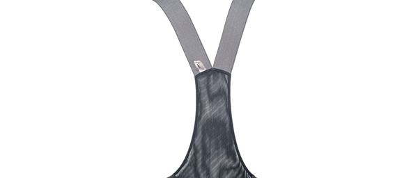 - Tubular elastic bib straps with meshed rear panel
