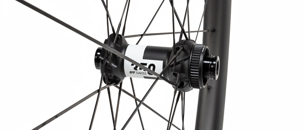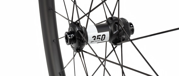 DT Swiss 350 hubs anchor the build with 36-tooth star ratchet engagement, translating to instant power pickup when you accelerate out of corners or surge on climbs. The 350 sits in DT's mid-tier lineup, offering the same proven ratchet mechanism as their higher-end options with slightly heavier internals that prioritize long-term durability over gram counting. Straight-pull spokes laced in a two-cross pattern connect hub to rim, with bladed center sections to reduce aerodynamic drag through the spoke bed.... Read More