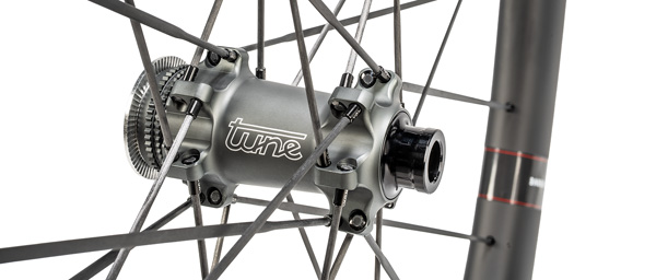 Tune machines the Pico hubs at their facility in Buggingen, Germany, specifically for Reserve rim dimensions. The drilling pattern matches the exact effective rim diameter and spoke hole offset of Reserve SL rims, allowing the straight-pull bladed carbon Vonoa spokes to travel directly between hub flange and nipple seat without bending or twisting along their length. This dedicated hub geometry creates a stiffer wheel structure with efficient load distribution across the spoke bed. On the road, the direct spoke path translates to responsive acceleration during attacks and planted cornering feel when laying power through sweeping bends.... Read More