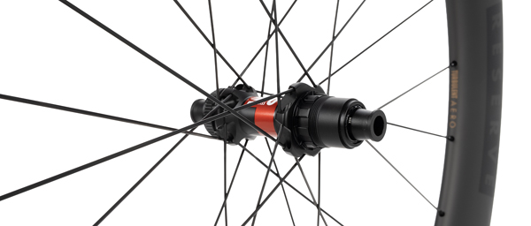 Each wheel uses 24 bladed Sapim CX Ray spokes in a two-cross pattern, creating a balance of lateral stiffness and vertical compliance that keeps the wheels sharp yet forgiving. The spoke lacing, combined with Reserve’s asymmetric rim drilling, evens tension across both flanges for consistent alignment and long-term durability. Every build is completed by hand, ensuring precise trueness, tension, and dish before final inspection. It’s the kind of attention to detail that riders feel on the first descent and still appreciate thousands of kilometers later.