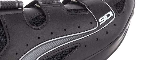 The Tarus upper is constructed primarily from Sidi's Technomicro fabric. These non-stretch panels provide support and protection from the elements. Located between these panels, are mesh inserts for added ventilation that provide breathability and internal climate control. The Tarus upper features a three Velcro closure system designed from Sidi's last/foot form design. This allows individual adjustment of the instep, forefoot and metatarsal (toe box) areas for a perfected fit. These easy to adjust and durable straps offer plenty of grip to hold your foot securely. The robust design will not slip or loosen while riding.